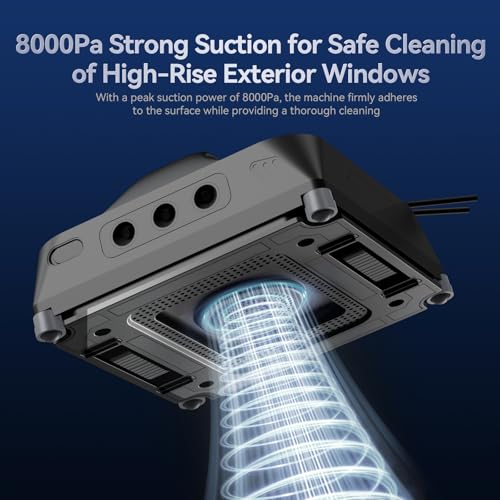 Fensterputzroboter mit 6 Wasserdüsen, 8000 PA Saugkraft und Kantenerkennungstechnologie für Innen- und Außenfenster. Inklusive 100 ML Doppelwassertank für effiziente Reinigung und präzise Planung.