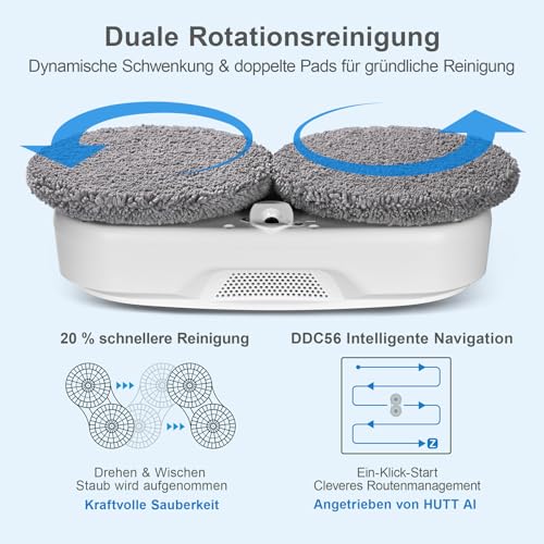HUTT DDC56 Fensterputzroboter Doppelstrahl mit Ultraschall Sprühfunktion, Elektrischer Fensterputzer Fernbedienung mit Doppelter Wassertank Tank, Fensterkantenerkennung