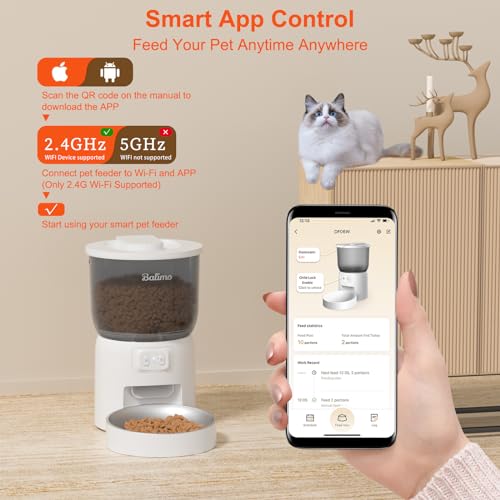 Balimo Futterautomat Katze, 3L katzenfutter automat, 2.4G WiFi Futterspender Katze, App Steuerung mit Katzen Futterautomaten,1 bis10 Mahlzeiten pro Tag, Geeignet für Hunde, Weiß