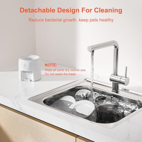 【304 Edelstahlschüssel】 Der automatische Katzenfutterspender von Balimo verwendet Edelstahlschalen in Lebensmittelqualität, die sicher und geruchlos sind, verhindern, dass Haustiere allergische Reaktionen auf Kunststoff auslösen und die Reinigung von fettigen Futterresten erleichtern. Jeder Schluck Essen ist frisch.