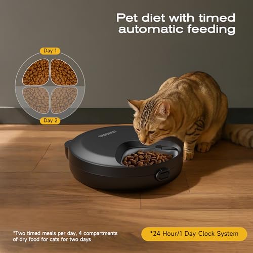 Futterautomat Katze Nassfutter Katzenfutter Automat: Futterspender Katze mit Programmierbarem Timer und Kuehlung – Trockenfutterspender für Hund Kabellos Batteriebetrieben – 4 Mahlzeiten für Haustiere