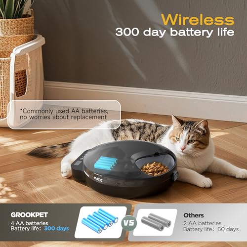 360°Freier Einsatz: Die batteriebetriebene Lösung ermöglicht eine echte kabellose Nutzung. Katzen futterautomaten nassfutter kann überall platziert werden, vom Erkerfenster im Schlafzimmer bis zur Ecke des Hofes, und definiert die räumliche Ästhetik der Haustierhaltung neu (die mit GROOKPET ausgestattete Batterie kann 300 Tage lang unabhängig arbeiten). Die meisten Teile sind spülmaschinenfest und somit leicht zu reinigen