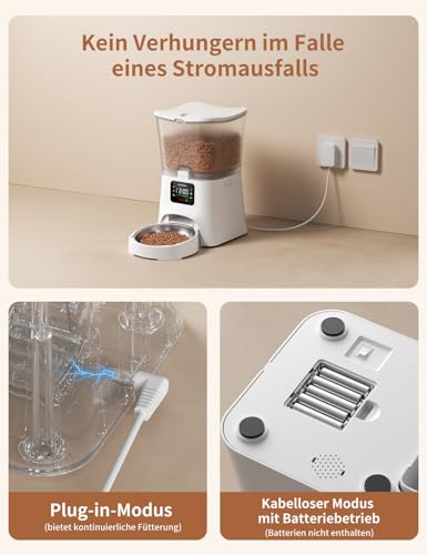 🐈【Duales Stromversorgungssystem】🐾katze futterautomat hat ein Batteriefach (das Produkt enthält keine Batterien) und externen Strom doppelten Schutz, müssen nicht über Stromausfälle zu stoppen arbeiten, aus der Reise und müssen nicht über die Ernährung der Kleinen zu kümmern