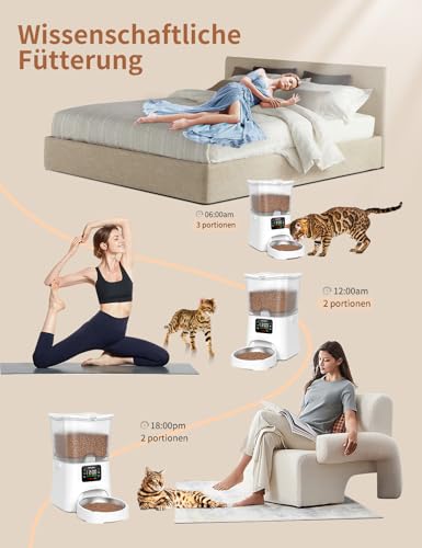 🐈【Wissenschaftliche Fütterung】🐾futterautomat katze begrenzen gefräßige Katzen und Hunde, katzenfutter automat für 1-6 Mahlzeiten pro Tag eingestellt werden, und jede Mahlzeit kann 1-6 Portionen, jede Portion von 8g ± 2g, katzen futterautomaten kann 1,6 kg (15 Tage oder so) von Trockenfutter gespeichert werden, müssen Sie sich keine Sorgen machen, dass Ihre geliebten Katzen hungern werden