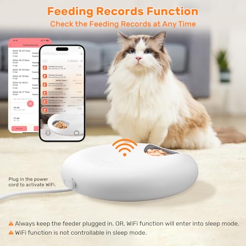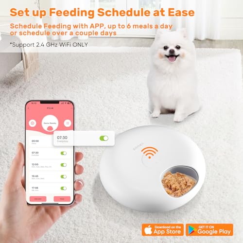 【WIFI APP Control】Spezielles Design mit intelligenter APP, um Ihr Fütterungsprogramm zu verwalten, egal wann und wo. Planen Sie einen Fütterungsplan für bis zu 5 Mahlzeiten mit täglicher Speicherfunktion. Verfolgen Sie Fütterungsaufzeichnungen und teilen Sie das Gerät mit mehreren Konten (nur 2.4GHz WIFI Netzwerk).