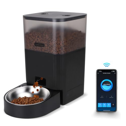 Nobleza – WiFi Automatischer Futterautomat für Katze & Hund, 4.2L Pet Feeder mit Timer, 10S Sprachaufnahme, 1-10 Mahlzeiten, Edelstahl Napf & Trockenmittelbeutel, Schwarz