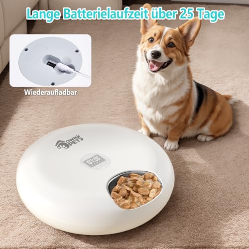 Kabelloser Komfort, langlebiger Akku : Mit seinem kabellosen Design können Sie den Futterspender überall in Ihrem Zuhause platzieren, ohne lästiges Kabelsalat oder eingeschränkte Platzierung. Eingebaute wiederaufladbare Batterie, kann für 30 Tage dauern, nachdem er vollständig aufgeladen ist.