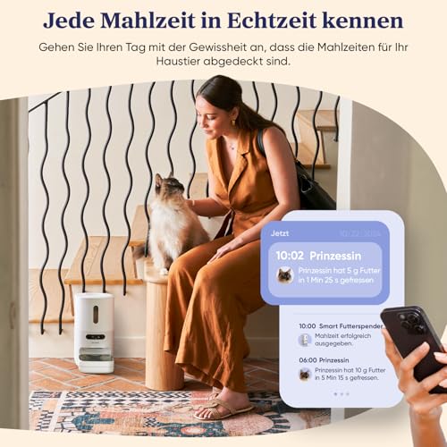 𝑰𝒏𝒅𝒊𝒗𝒊𝒅𝒖𝒆𝒍𝒍𝒆𝒓 𝑭ü𝒕𝒕𝒆𝒓𝒖𝒏𝒈𝒔𝒑𝒍𝒂𝒏: Planen Sie bis zu 10 Mahlzeiten täglich, mit bis zu 10 Portionen pro Mahlzeit; Der 3,6-Liter-Behälter kann eine Katze oder einen kleinen Hund für 20 bis 30 Tage versorgen, unterstützt Trocken-, gefriergetrocknetes und gemischtes Futter (nur Trockenfutter)