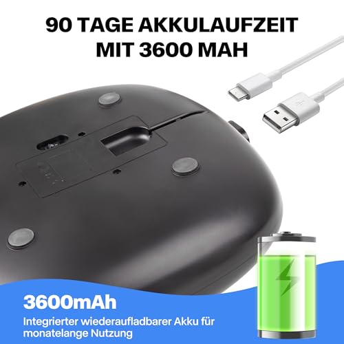 **90 Tage Akkulaufzeit** – 3600-mAh-Batterie mit USB-Aufladung. Kein ständiges Nachladen, perfekt für Reisen oder lange Arbeitstage.