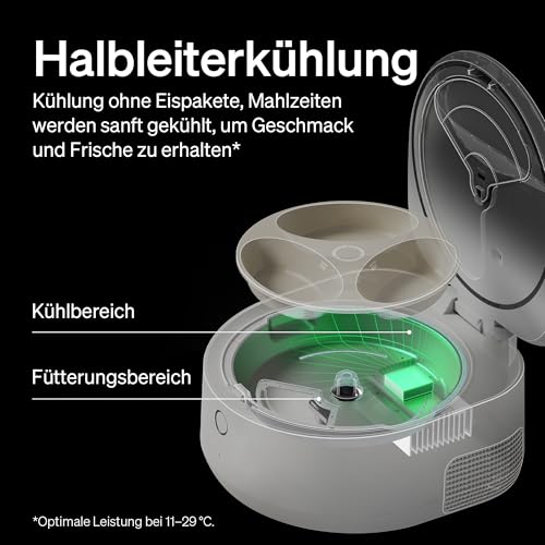 Mit größter Sorgfalt hergestellt: Der Infrarotsensor des Deckels priorisiert die Sicherheit Ihres Haustiers und stellt sicher, dass der Deckel nur geschlossen werden kann, wenn das Haustier keine Aktivität zeigt. Darüber hinaus bleibt das Futter im entsprechenden Fütterungsbereich kurz vor dem Servieren einer Mahlzeit 30 Minuten lang im ungekühlten Bereich, um Raumtemperatur zu erreichen, dann öffnet sich der rotierende Deckel (das Futter hat keine Heizfunktion)