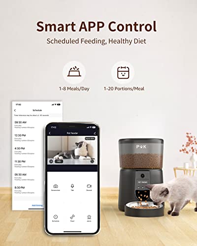 PUPPY KITTY Automatischer Futterspender für Katzen, mit Kamera 1080P, 2,4 G WiFi mit App, Video, Audio, Nachtsicht, Schüssel aus Edelstahl, 1-8 Mahlzeiten pro Tag