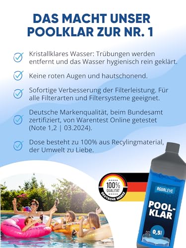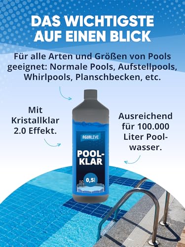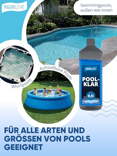 AGUALEVE® Poolklar 0,5l *NEU* | Kristallklar 2.0 Formel für perfektes Poolwasser | Pools, Whirlpools, Planschbecken | Markenqualität Made in Germany | für 100.000 Poolwasser | mit Note 1,2 getestet