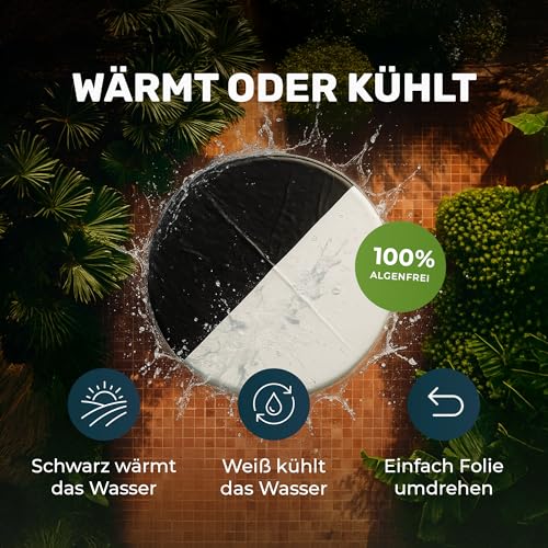 SOLAR-WÄRME & KÜHLEN – schwarze Seite speichert Sonnenwärme – wärmt Wasser, weiße Seite verhindert Algenbildung/ kühlt