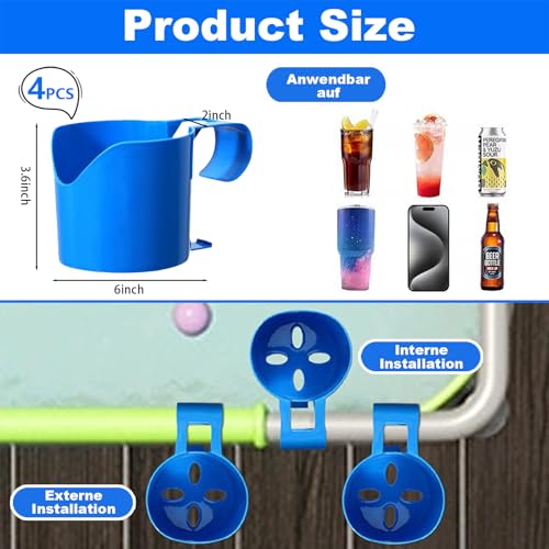 Mit diesem 4er-Set blauer Getränkehalter halten Sie Getränke, Smartphones oder kleine Accessoires stilsicher am Poolrand griffbereit. Ob erfrischende Säfte, eiskalte Cocktails oder der morgendliche Kaffee – die Halter sorgen für eine spritzfreie Entspannung ohne lästiges Hin- und Herlaufen. Ideal für Poolpartys, Familienbadetage oder stille Wellness-Momente!