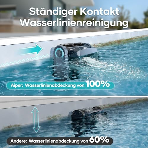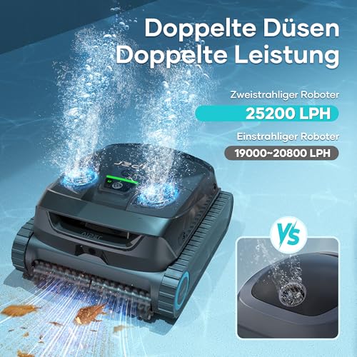AIPER Scuba X1 Poolroboter mit App, 25200 LPH Mühelose Sauberkeit mit Doppel-Auslass, 3 μm Ultra-Feinfiltersystem, Horizontale Wasserlinienreinigung, Poolsauger Akku Ideal für Eingelassene Pools