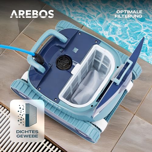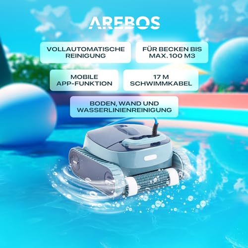 Arebos Automatischer Poolroboter | Poolrunner für Pools bis max. 100 m³ | Poolsauger Poolreiniger für Wand, Boden und Wasserlinie mit APP-Steuerung | 3 Reinigungsmodi