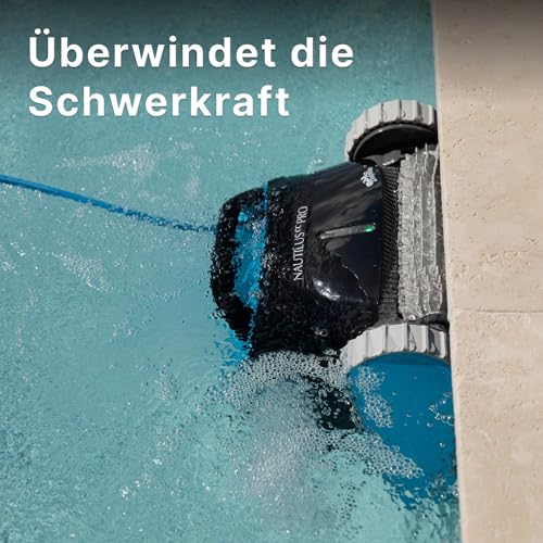 Überwindet die Schwerkraft: Dieser Poolroboter überwindet jedes Hindernis. Er navigiert mühelos über die Pooloberfläche, klettert Wände hoch und reinigt die Wasserlinie.