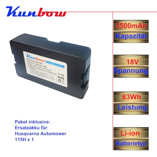 【Höhere Kapazität Akku für Husqvarna Automower】Zell-Typ: Lithium-Ion| Kapazität: 3500 mAh | Spannung: 18V | Nennenergie: 63Wh.
