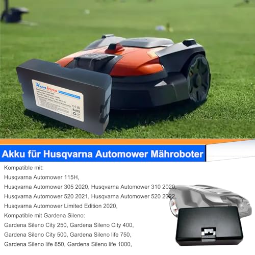【Voll kompatibler Ersatz-akku für Gardena】Dieser Akku ist voll kompatibel mit Husqvarna Automower 115H, Automower 305 2020, Automower 310 2020, Automower 520 2021, Automower 520 2022, Automower Limited Edition 2020, voll Kompatible mit Gardena Sileno City 250, Sileno City 400, Sileno City 500, Sileno life 750, Sileno life 850, Sileno life 1000 Rasenroboter, voll Kompatible mit McCulloch ROB S400, 600, 800, Flymo Easilife 200.