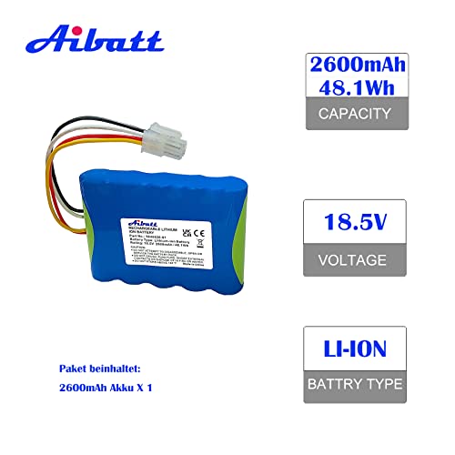 Aibatt Mähroboter akku,Ersatzakku für Husqvarna Automower 310,315,5848228-01,5848228-02,5848528-01, 5895862-01,Kompatible mit Gardena Sileno R100Li,R130Li,R160Li Rasenroboter. (18.5V/2600mAh/48.1Wh)