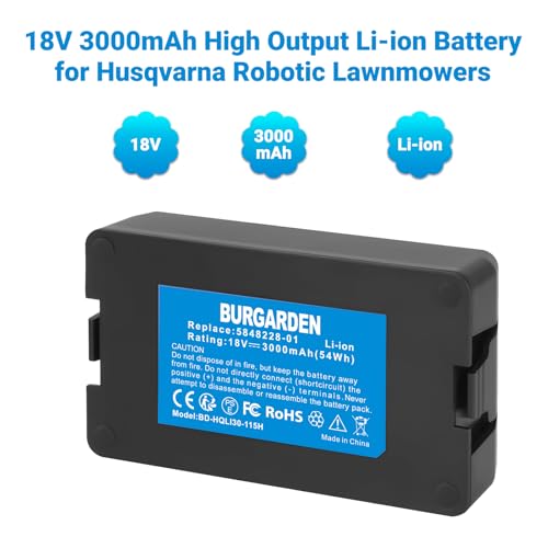 BURGARDEN 18V 3000mAh Li-ion Akku für Husqvarna Automower 115H, für Automower 305 2020, 310 2020, 520 2021, 520 2022, 315 315X, Akku für Gardena Sileno R160Li
