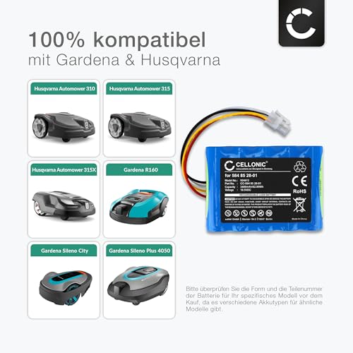 CELLONIC Akku kompatibel mit Husqvarna Automower 315, Automower 315X, R100Li, R100Lic, Gardena Sileno, R130LiC, R160Li 18.5V 3400mAh Li Ion