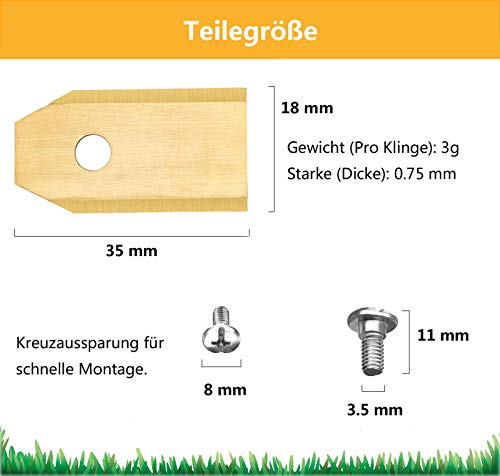 Mähroboter Ersatzmesser können bedenkenlos für alle Modelle der gängigen Markenhersteller wie Husqvarna, Gardena,und Yard Force.