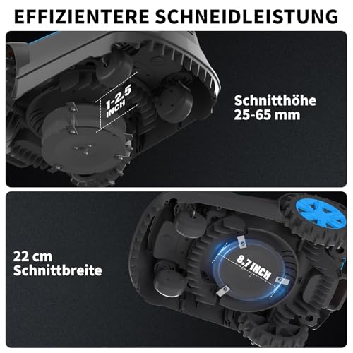 【AUTOMATISCHER MÄHROBOTER】Der intelligente Rasenroboter bietet eine mühelose Lösung für die Rasenpflege. Unabhängig von der Form Ihres Rasens definieren Sie einfach den Mähbereich – unser Mähroboter bewältigt bis zu 1200 m².