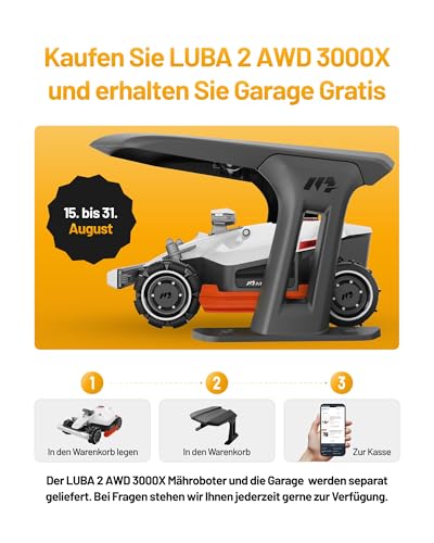 MAMMOTION LUBA 2 AWD 3000X Mähroboter ohne Begrenzungskabel, NetRTK+Vision, Keine RTK-Antenne erforderlich, Auto-Kartierung, Empf. 3000m², Max. 3600m², mit 4G-Modul, 80% Steigung