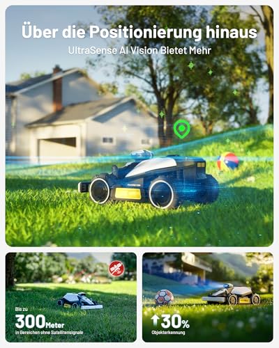 Kein Signalverlust & Präzises Kantenmähen: Dank UltraSense AI Vision kann der LUBA mini Mähroboter auch in Bereichen ohne Satellitensignal, wie unter Bäumen oder auf schmalen Wegen, bis zu 300 Meter mähen. Das intelligente Visionssystem erkennt einfühlsam, ob Kinder, Tiere oder andere Gegenstände wie Spielzeug, Gartenmöbel oder Werkzeuge im Weg sind, und umfährt diese sicher. Der LUBA mini AWD führt zudem ein präzises Nullabstand-Kantenmähen durch, selbst nahe an Wänden wird mit einer Genauigkeit von weniger als 5 cm gemäht