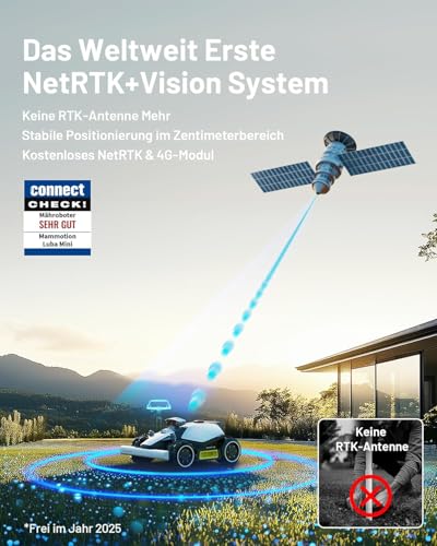 MAMMOTION LUBA mini AWD 800 Mähroboter ohne Begrenzungskabel, NetRTK+Vision, Keine RTK-Antenne erforderlich, Auto-Kartierung, Empf. 800m², Max. 1000m², mit 4G-Modul, 80% Steigung