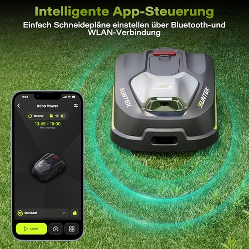 【Intelligente App-Steuerung】Unterstützt die Steuerung über eine Mobil-App mittels Bluetooth-und WLAN – Verbindung. Man kann jederzeit und überall die Rasenscheidepläne entsprechend der täglichen Planung und dem Wachstumszustand des Rasens flexibel einrichten, um eine individuelle Rasenpflege zu erreichen.