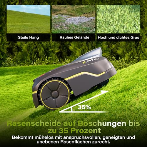 SUNTEK Mähroboter ohne begrenzungskabel AI Vision-Kamera, Rasenmäher Roboter, Max 600 m², Genaue Hindernisvermeidung, IPX5-Wasserschutz, APP Bedienbar