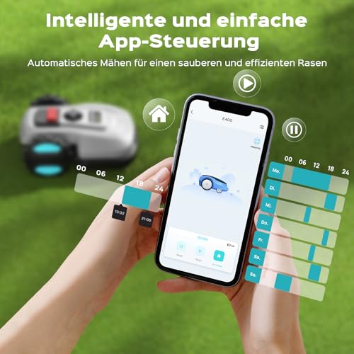 Intelligente App-Steuerung für den Mähroboter:Der Mähroboter kann bequem über eine mobile App gesteuert werden. Sie können Ihren Mähplan verwalten, das Mähen starten, für eine moderne, flexible und komfortable Rasenpflege
