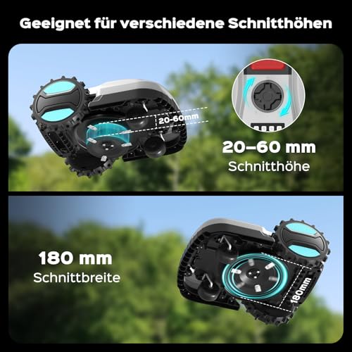 Einstellbare Schnitthöhe:Dieser Rasenroboter bietet eine einstellbare Schnitthöhe von 20 bis 60 mm, sodass Sie das Aussehen Ihres Rasens ganz nach Ihren Vorlieben und der Grasart anpassen können