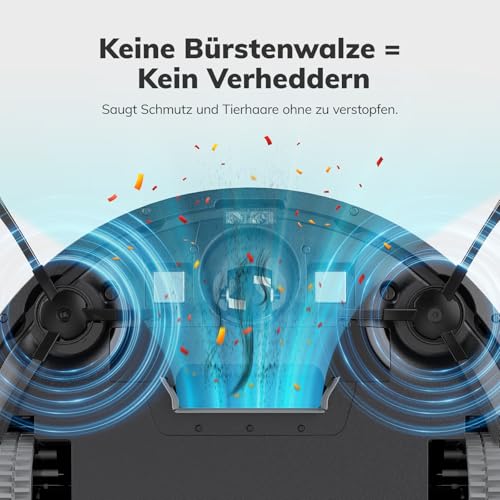【Geeignet für Tierbesitzer】Mit einem verwicklungsfreien Saugansatz konzentriert sich der E3 Saugroboter auf die Aufnahme von Haaren ohne Verwicklung; er bewältigt auch effektiv Schmutz, Krümel und Ablagerungen auf Hartböden, Fliesen, Laminat, Stein und Teppichen mit kurzem Flor.