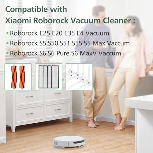 [FÜR Roborock & MI ROBOT] Das Paket enthält 2 Hauptbürsten, 4 Seitenbürsten, 4 Filter und 1 Reinigungsbürste. Unser xiaomi & roborock Ersatz ist kompatibel mit dem Roborock E25 E20 E35 E4 S5 S50 S51 S55 S5 Max S6 S6 Pure S6 MaxV Roborock Staubsauger. Dieser Ersatz passt für xiaomi & roborock Staubsauger so gut wie original. Wir verwenden original xiaomi & roborock Roboterstaubsauger, um diesen Zubehörsatz zu testen.